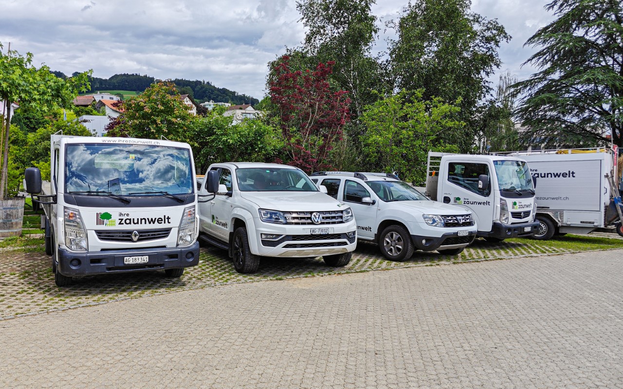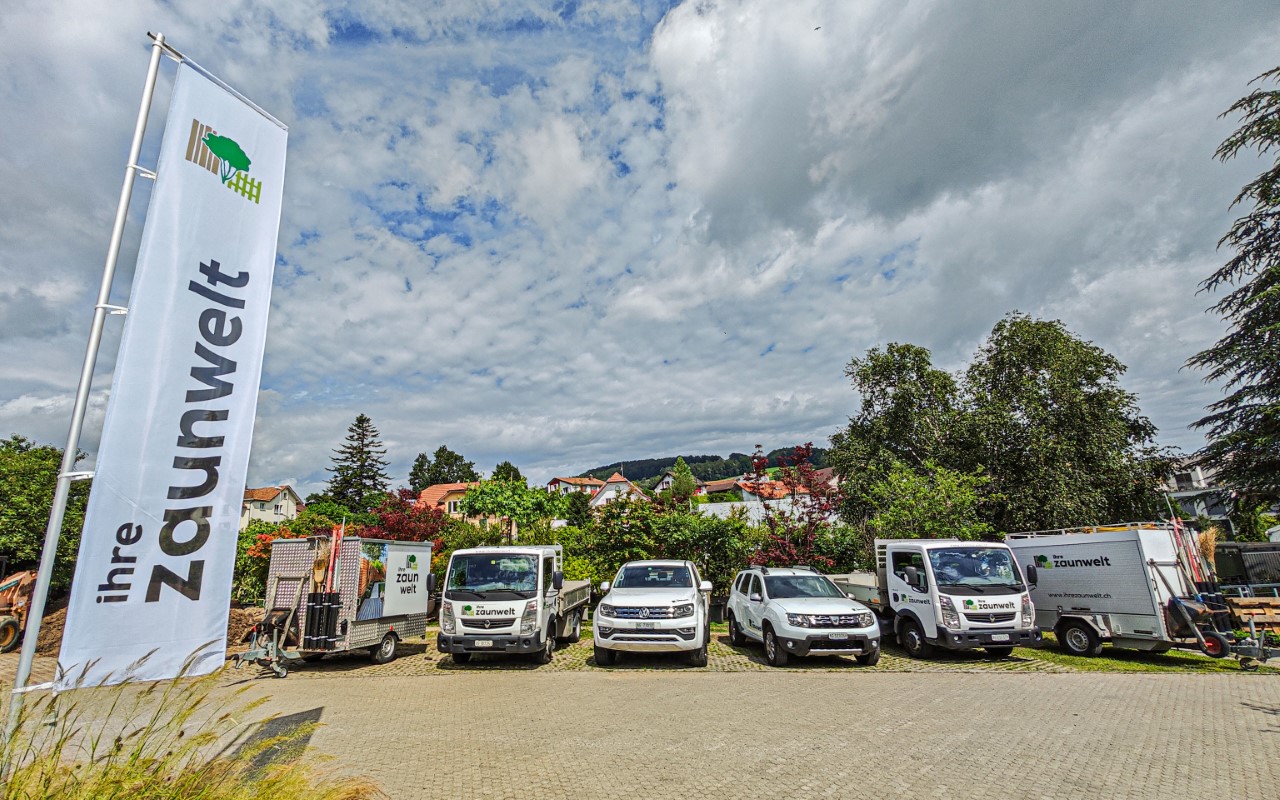 Pünktlich zum Start der 'Zaunwelt' wurden nach der Überarbeitung des Corporate Design auch die Fahrzeuge umbeschriftet. Alle Fahrzeuge und Werkzeuganhänger sind in weiss gehalten, damit das frisch gestaltete Logo deutlich erkennbar ist.